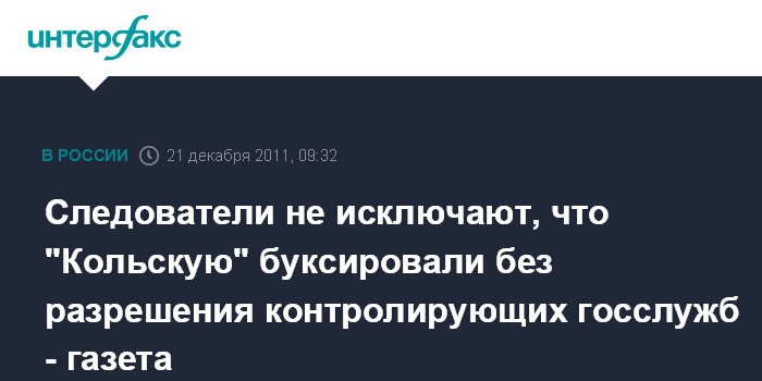 Следователи не исключают, что "Кольскую" буксировали без разрешения контролирующих госслужб - газета