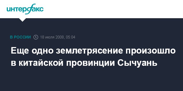 Пекин. 18 июля. ИНТЕРФАКС-КИТАЙ - Подземный толчок силой 4,6 балла по шкале Рихтера зафиксирован в ночь на пятницу в уезде Мяньчжу, на юго-западе китайской провинции Сычуань, сообщили местные СМИ со ссылкой на заявление китайского сейсмологического управления.