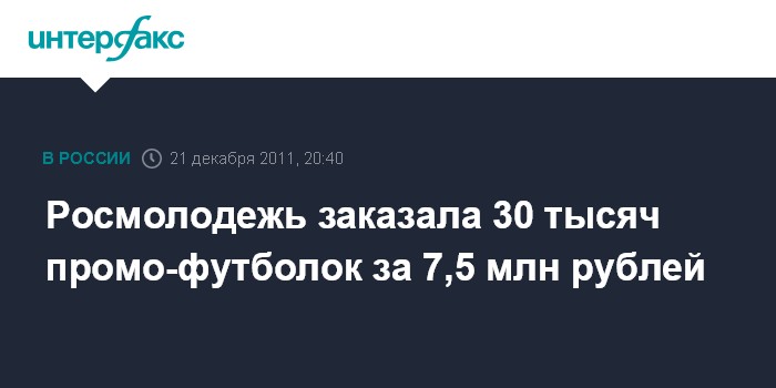 Росмолодежь заказала 30 тысяч промо-футболок за 7,5 млн рублей