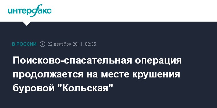 Как сообщалось, буровая платформа "Кольская" затонула в Охотском море во время шторма 18 декабря при ее буксировке от западного побережья Камчатки на Сахалин. На ее борту в это время находились 67 человек, более половины из которых - жители Мурманска. Достать из воды живыми удалось 14 человек. Они были доставлены на Сахалин, четверо из них уже выписаны из больницы. Еще 14 были найдены погибшими. Остальные считаются пропавшими без вести.