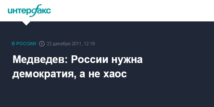 Москва. 22 декабря. INTERFAX.RU - Президент РФ Дмитрий Медведев заявил, что России необходимо демократическое развитие, а не хаос.