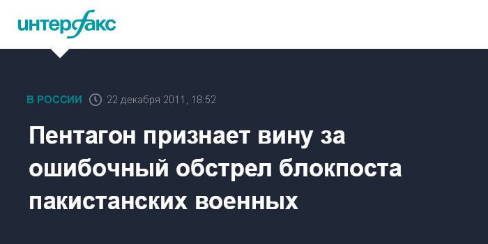 Вашингтон. 22 декабря. INTERFAX.RU - Министерство обороны США в четверг признало, что несет ответственность за обстрел вертолетами НАТО пакистанского блокпоста.
