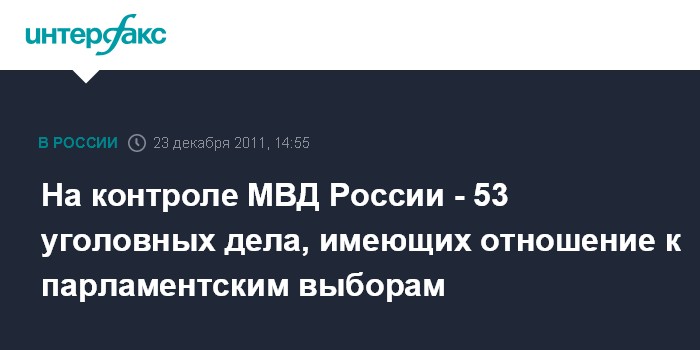 На контроле МВД России - 53 уголовных дела, имеющих отношение к парламентским выборам