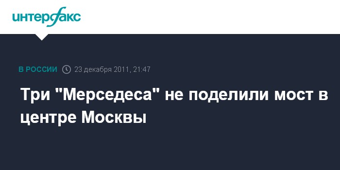 "В центре Москвы на Бородинском мосту произошло столкновение трех легковых автомобилей "Мерседес". В результате ДТП пострадали три человека", - сообщил "Интерфаксу" источник в правоохранительных органах в пятницу.
