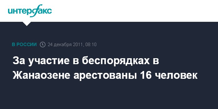 Астана. 24 декабря. ИНТЕРФАКС-КАЗАХСТАН - В Мангистауской области Казахстана за участие в массовых беспорядках в Жанаозене арестованы 16 человек, сообщил председатель апелляционной коллегии Мангистауского областного суда Нурсерик Шарипов.