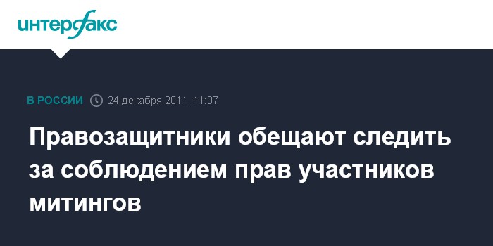 Москва. 24 декабря. INTERFAX.RU - Ведущие российские неправительственные организации в субботу будут следить за тем, чтобы не нарушались права участников оппозиционных митингов, которые пройдут в Москве и других российских городах.