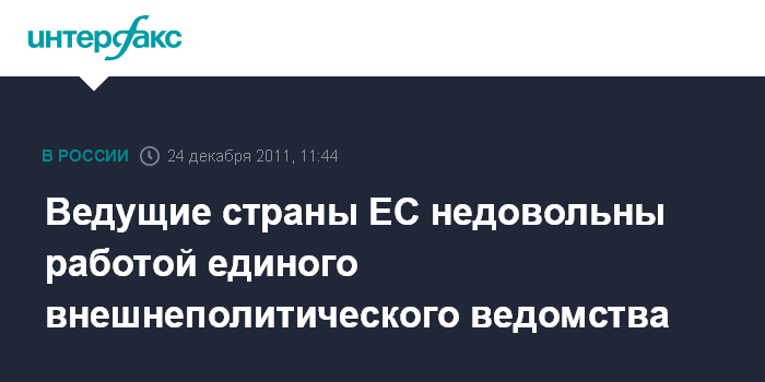 Лондон. 24 декабря. INTERFAX.RU - Министры иностранных дел 12 европейских стран направили в Брюссель письмо, в котором критикуют работу единого внешнеполитического ведомства ЕС, пишет в субботу британская газета "Дейли телеграф". "Необходимо подумать о том, каким образом работа этой службы может быть улучшена. Единая дипломатическая служба должна уделять больше времени подготовительной работе, а документы, на основе которых принимаются решения, должны передаваться представителям стран-членов ЕС заблаговременно", - говорится в письме, копию которого получила эта газета.