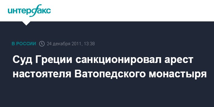 При этом собеседник агентства высказал мнение, что "этот арест носит исключительно политический характер". "Менее месяца назад пояс Пресвятой Богородицы, хранящийся в Ватопедском монастыре, привозили в Россию, и я не исключаю, что данный шаг греческих властей может быть связан именно с этим", - отметил собеседник агентства.