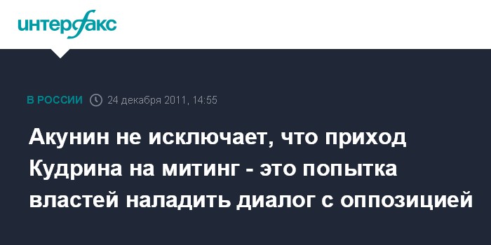Москва. 24 декабря. INTERFAX.RU - Известный писатель Борис Акунин допускает, что присутствие на митинге экс-главы Минфина РФ Алексея Кудрина может оказаться попыткой наладить диалог со стороны властей.