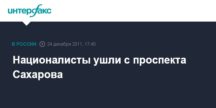 Москва. 24 декабря. INTERFAX.RU - Колонна сторонников националистических движений, представители которых пытались прорваться к сцене во время митинга оппозиции, покинула проспект Академика Сахарова.