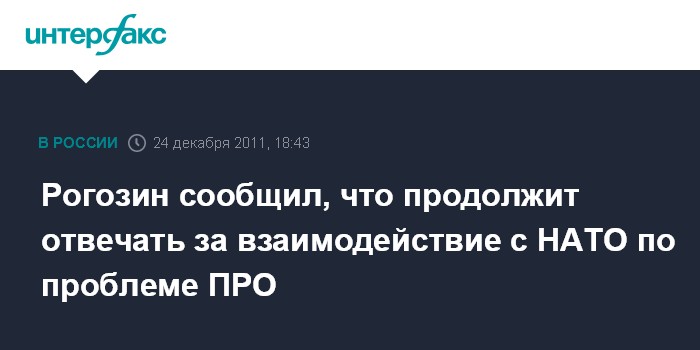 Москва. 24 декабря. INTERFAX.RU - Дмитрий Рогозин, назначенный в пятницу вице-премьером РФ, сообщил, что за ним сохраняются обязанности спецпредставителя президента РФ по взаимодействию с НАТО в области ПРО. "Т.е. теперь не в качестве посла, но в качестве вице-премьера. Это должно еще больше убеждать))", - написал он в своем микроблоге в Твиттере.