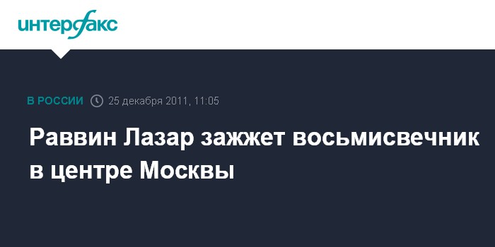 Раввин Лазар зажжет восьмисвечник в центре Москвы