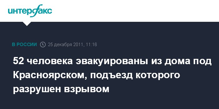 52 человека эвакуированы из дома под Красноярском, подъезд которого разрушен взрывом