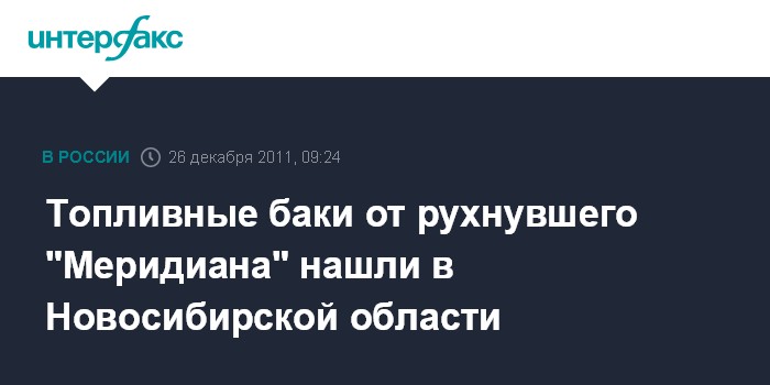 Топливные баки от рухнувшего "Меридиана" нашли в Новосибирской области