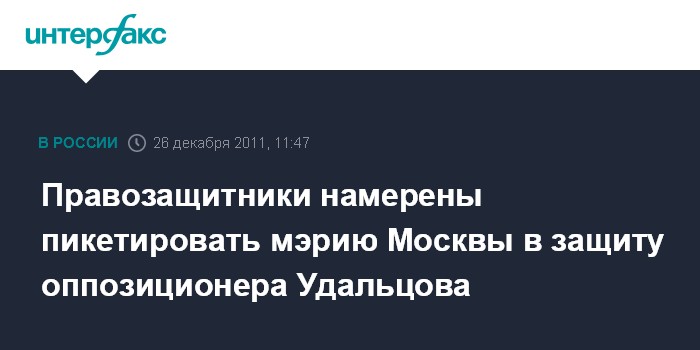 Москва. 26 декабря. INTERFAX.RU - Правозащитники начинают серию одиночных пикетов возле мэрии Москвы с требованием освободить оппозиционера Сергея Удальцова, которого вновь приговорили к административному аресту.