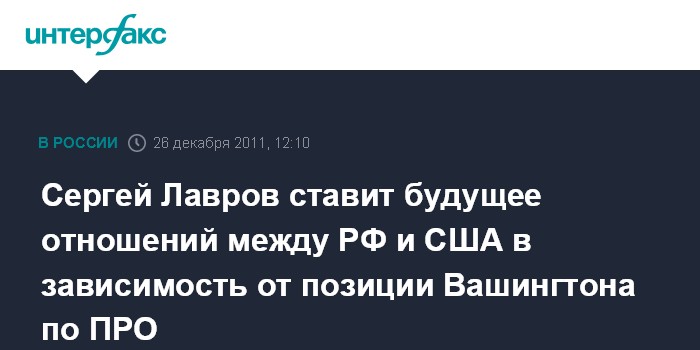 Москва. 26 декабря. INTERFAX.RU - Способность Вашингтона услышать озабоченности Москвы по ПРО имеют ключевое значение для будущего российско-американских отношений, заявил в интервью "Интерфаксу" в понедельник глава МИД РФ Сергей Лавров.