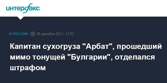 Капитан сухогруза "Арбат", прошедший мимо тонущей "Булгарии", отделался штрафом
