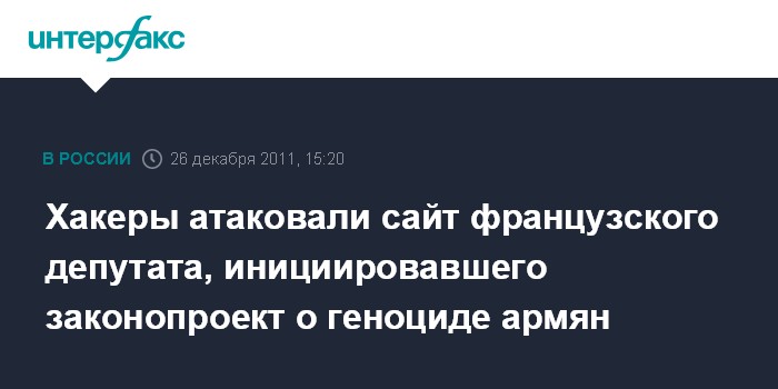 Хакеры атаковали сайт французского депутата, инициировавшего законопроект о геноциде армян
