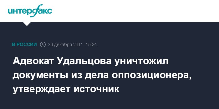 Москва. 26 декабря. INTERFAX.RU - Адвокат Сергея Удальцова вырвал несколько листов из административного дела своего подзащитного во время ознакомления с ним, а затем передал их депутату Госдумы, который съел документы, сообщил "Интерфаксу" источник в судебных кругах.