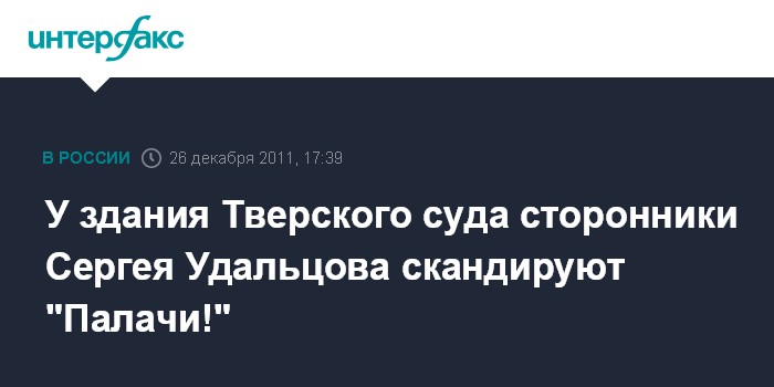 Москва. 26 декабря. INTERFAX.RU - В здании Тверского районного суда, где собрались сторонники освобождения оппозиционера Сергея Удальцова, ранее осужденного на 10 суток административного ареста, собрались около 60 человек, не считая журналистов.