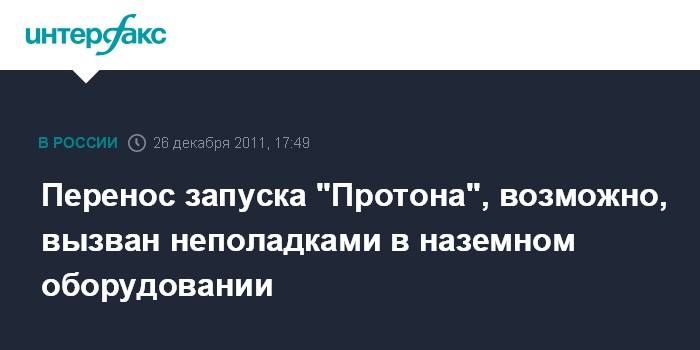 Перенос запуска "Протона", возможно, вызван неполадками в наземном оборудовании