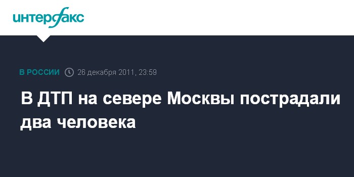 Москва. 26 декабря. INTERFAX.RU - Два человека пострадали в результате лобового столкновения автомобилей на севере Москвы, сообщил "Интерфаксу" источник в правоохранительных органах в понедельник.