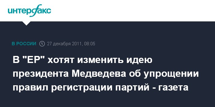 В "ЕР" хотят изменить идею президента Медведева об упрощении правил регистрации партий - газета