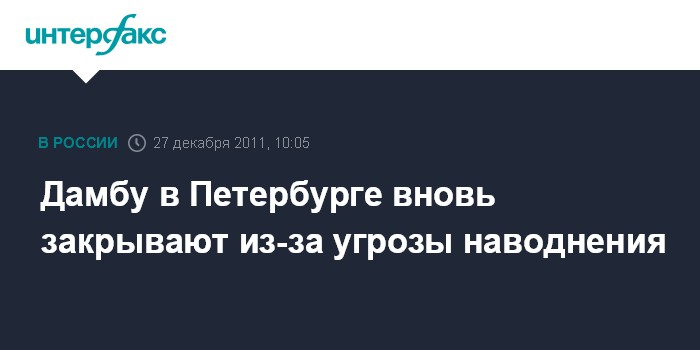 Санкт-Петербург. 27 декабря. INTERFAX.RU - Комплекс защитных сооружений Петербурга (КЗС) закрывается во вторник из-за новой угрозы наводнения, сообщили "Интерфаксу" в пресс-службе учреждения.
