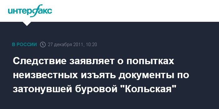 Следствие заявляет о попытках неизвестных изъять документы по затонувшей буровой "Кольская"