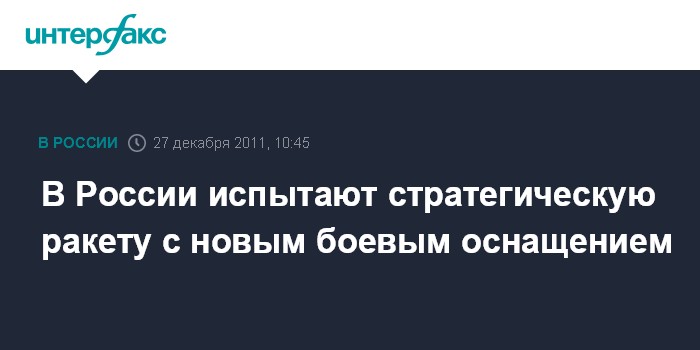 В свою очередь высокопоставленный представитель российского Генштаба сообщил "Интерфаксу-АВН", что новое боевое оснащение МБР впервые было успешно испытано в 2010 году.