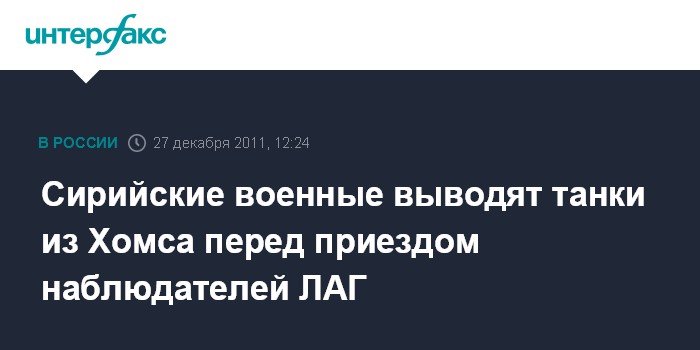 Каир. 27 декабря. INTERFAX.RU - Сирийские военные вывели во вторник из города Хомса не менее шести танков, сообщает телеканал Sky News.