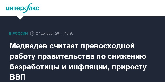 Медведев считает превосходной работу правительства по снижению безработицы и инфляции, приросту ВВП