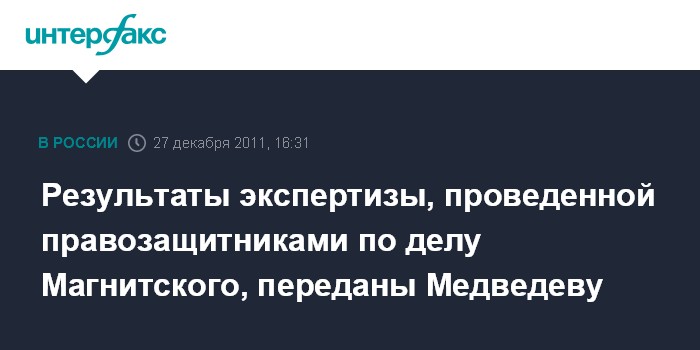 Результаты экспертизы, проведенной правозащитниками по делу Магнитского, переданы Медведеву