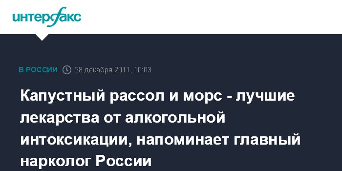Капустный рассол и морс - лучшие лекарства от алкогольной интоксикации, напоминает главный нарколог России