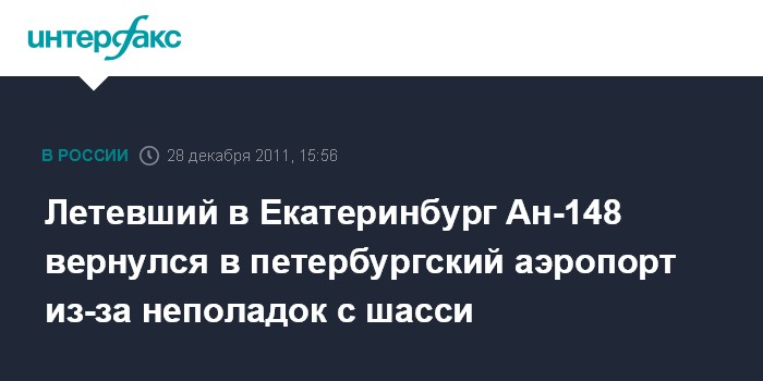 "После взлета у самолета Ан-148, следовавшего в Екатеринбург, не задвинулась стойка шасси, в результате чего командир принял решение вернуться в "Пулково", - сказал собеседник агентства.