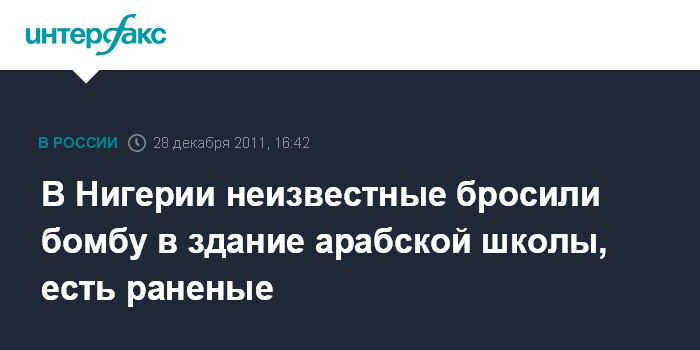 Каир. 28 декабря. ИНТЕРФАКС - В нигерийском штате Дельта неизвестные бросили самодельную бомбу в здание арабской школы, сообщает в среду местная полиция.