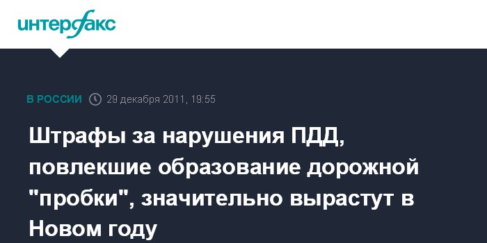 Штрафы за нарушения ПДД, повлекшие образование дорожной "пробки", значительно вырастут в Новом году