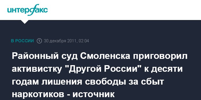 Районный суд Смоленска приговорил активистку "Другой России" к десяти годам лишения свободы за сбыт наркотиков - источник