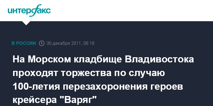 На Морском кладбище Владивостока проходят торжества по случаю 100-летия перезахоронения героев крейсера "Варяг"