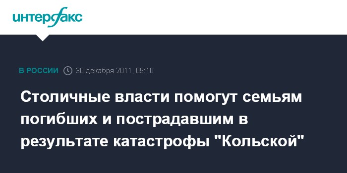 Столичные власти помогут семьям погибших и пострадавшим в результате катастрофы "Кольской"