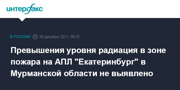 Москва. 30 декабря. INTERFAX.RU - Радиационный фон в зоне пожара на атомной подводной лодке "Екатеринбург" в поселке Росляково Мурманской области остается в норме, сообщает МЧС России.