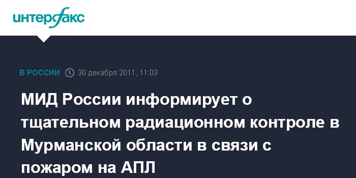 МИД России информирует о тщательном радиационном контроле в Мурманской области в связи с пожаром на АПЛ