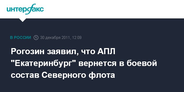Рогозин заявил, что АПЛ "Екатеринбург" вернется в боевой состав Северного флота