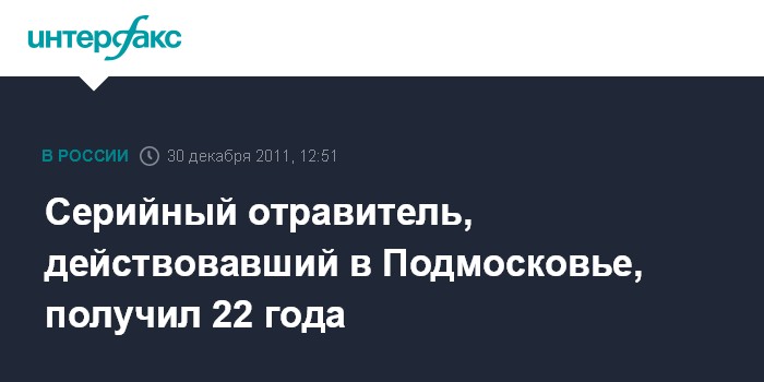 Серийный отравитель, действовавший в Подмосковье, получил 22 года