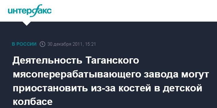 В московском Роспотребнадзоре сообщили, что 26 декабря 2011 года Управлением Роспотребнадзора по Москве по факту выявления в колбасе костных фрагментов было возбуждено дело и проведено административное расследование в отношении изготовителя продукции ОАО "ТАМП" Таганский мясоперерабатывающий завод.