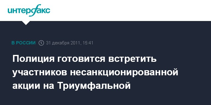 Москва. 31 декабря. INTERFAX.RU - Правоохранительные органы Москвы заранее готовятся к несанкционированной акции, которую активисты "Стратегии-31" собираются провести вечером в субботу, в канун Нового Года, на Триумфальной площади.