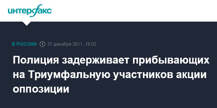 Москва. 31 декабря. INTERFAX.RU - Сотрудники полиции начали задерживать участников несанкционированной акции на Триумфальной площади в центре Москвы, передает корреспондент "Интерфакса".