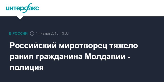 Кишинев. 1 января. INTERFAX.RU - Военнослужащий из контингента российских миротворческих сил выстрелил в гражданина Молдавии, который не подчинился его требованиям остановиться на КПП в зоне безопасности Приднестровья, сообщил "Интерфаксу" пресс-секретарь комиссариата полиции Кишинева Адриан Жовмир.
