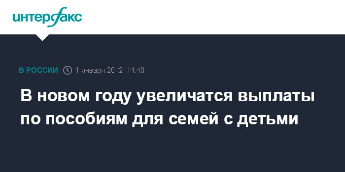 Москва. 1 января. INTERFAX.RU - С 1 января 2012 года все виды пособий, предназначенных для российских семей с детьми, проиндексированы на 6% по сравнению с предыдущим годом.