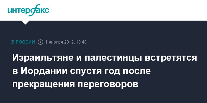 Дубай. 1 января. INTERFAX.RU - Израильская и палестинская делегация переговорщиков встретятся в ближайший вторник в Иордании спустя более года после прекращения прямых переговоров между сторонами, сообщает в воскресенье межарабский телеканал "Аль-Джазира".